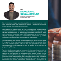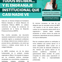 Para esta edición nuestra revista de la RCO busca ampliar el panorama del cumplimiento de la Norma de Desarrollo Profesional Continuo, para que deje de verse solamente como un requisito de cumplimiento y se perciba mejor como mecanismo mediante el cual el IMCP asegura que las personas que lo integran mantengan vigentes sus competencias profesionales y puedan responder a los desafíos de un entorno cada vez más complejo.C.P.C. Miguel Ángel González Molina